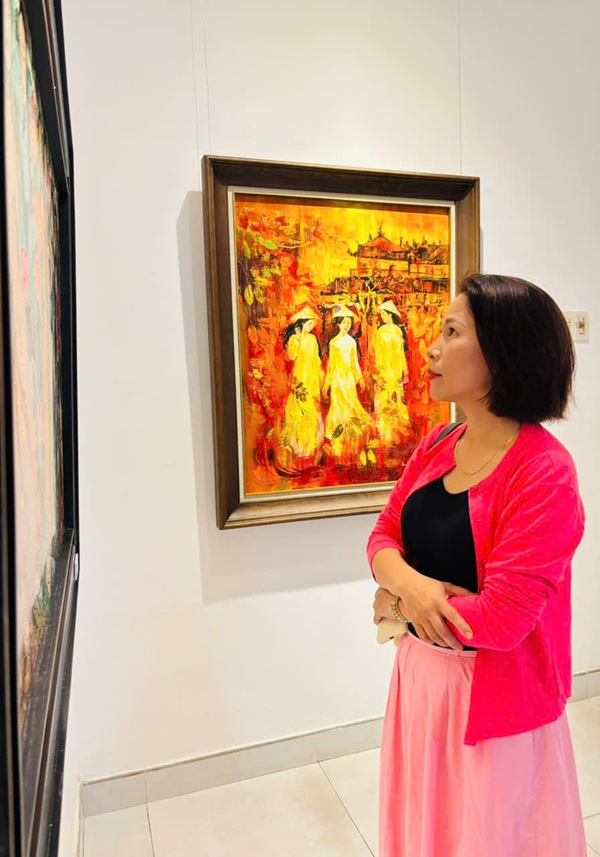 Người yêu nghệ thuật tham quan không gian triển lãm Mỹ thuật Sắc thu mới