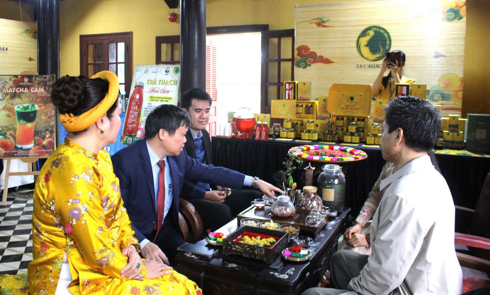 | Lãnh đạo thành phố tham quan và thưởng thức không gian trà được trưng bày và giới thiệu tại chương trình |