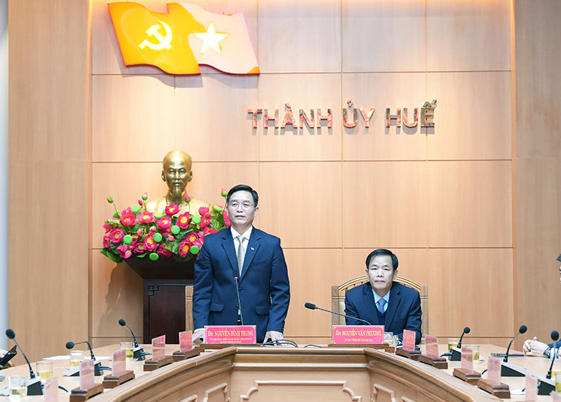 Đồng chí Bí thư Thành ủy Huế Nguyễn Đình Trung phát biểu giao nhiệm vụ