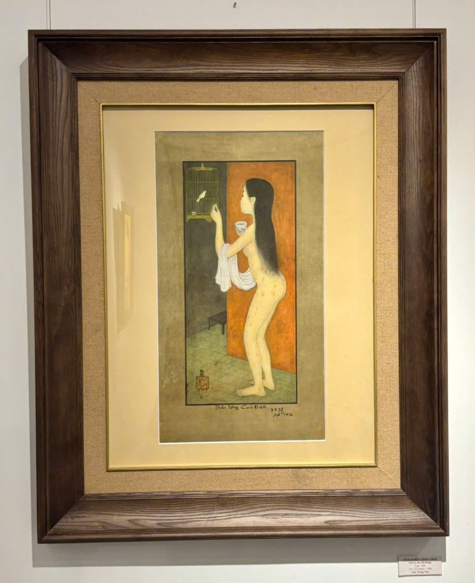 Cô gái bên lồng chim, Lụa, 53x25cm, (1966) của Họa sĩ Mai Trung Thứ