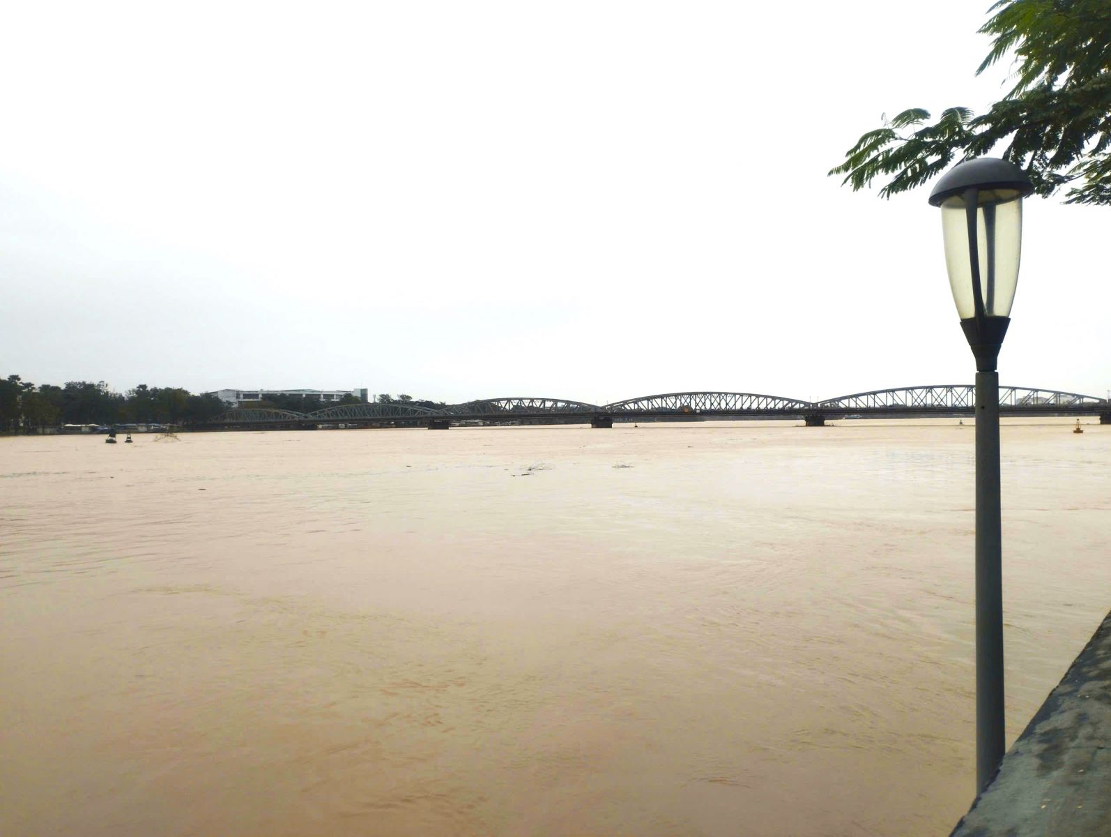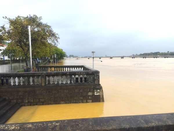 Lúc 5 giờ sáng 17/11, mực nước sông Hương tại Kim Long là 2,48m, trên báo động 2 là 0,48m; sông Bồ tại Phú Ốc là 4,79m, trên báo động 3 là 0,29m. Hiện tại mưa thượng nguồn lưu vực sông Hương đang có xu hướng giảm. Tuy nhiên, theo dự báo của Đài Khí tượng Thủy văn TP. Huế lượng mưa sẽ tăng trở lại trong trưa, chiều và đêm nay (17/11). Mực nước sông Hương sẽ lên trở lại, có khả năng xấp xỉ trên báo động 3 (báo động 3 sông Hương là 3,5m).