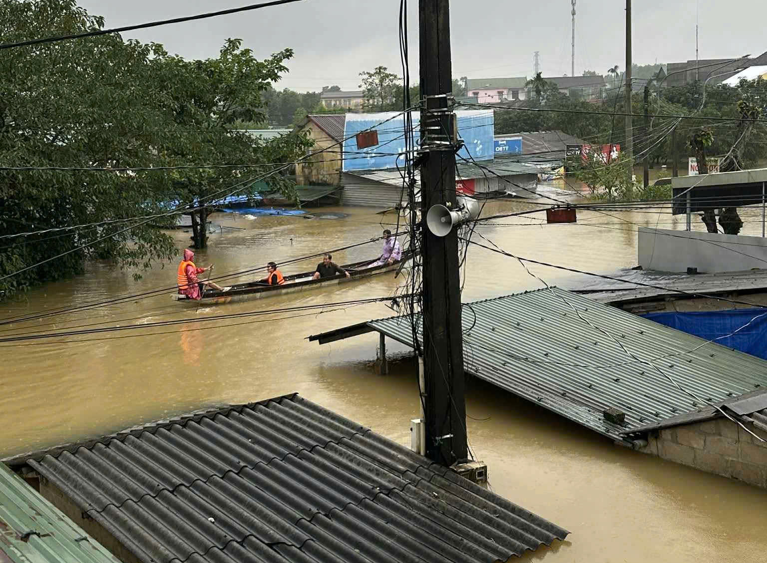 | Nước dâng gây ngập sâu tại những nơi thấp trũng |