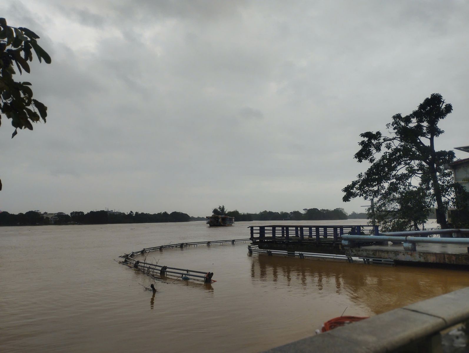 | Nước Sông Hương dâng cao, tràn qua đường Nguyễn Phúc Nguyên, phường Kim Long |