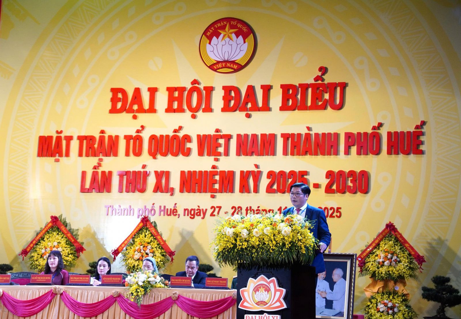 Phát biểu chỉ đạo Đại hội, Phó Bí thư Đảng ủy MTTQ, các đoàn thể Trung ương Trần Thắng và UVTW Đảng, Bí thư Thành ủy Nguyễn Đình Trung ghi nhận và biểu dương những thành tích của Mặt trận các cấp đạt được trong nhiệm kỳ qua. Những kết quả đạt được là nền tảng rất quan trọng trong quá trình phát triển của thành phố Huế trong thời gian tới. Đồng thời, đề nghị Đại hội tiếp thu những nội dung mà các đại biểu thảo luận, nhất là những tồn tại, hạn chế đã nêu trong báo cáo chính trị để xác định rõ hơn mục tiêu, nhiệm vụ, giải pháp trọng tâm, đột phá, cụ thể hóa vào chương trình hành động của Ủy ban MTTQ Việt Nam khóa XI, nhiệm kỳ 2025 -2030.