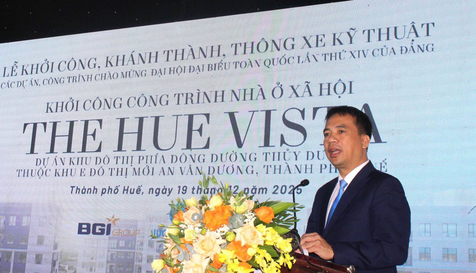 Sáng 19/12, Công trình Nhà ở xã hội The Hue Vista chính thức khởi công tại Khu đô thị phía Đông đường Thủy Dương- Thuận An, thuộc khu E đô thị mới An Vân Dương, Thành phố Huế (BGI Diamond Bay).
