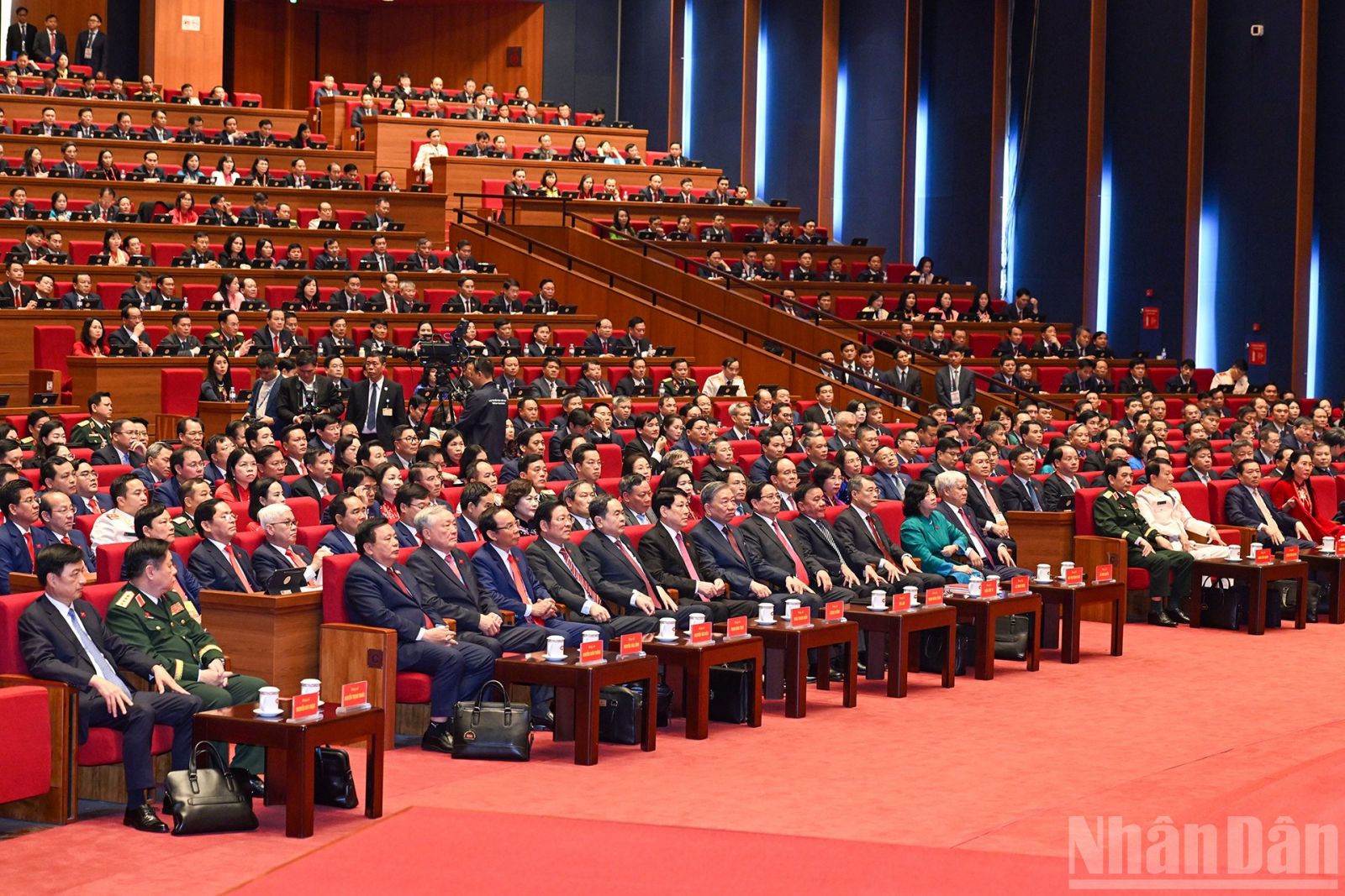 Toàn thể Đại hội dành một phút mặc niệm để tưởng nhớ đến đồng chí cố Tổng Bí thư Nguyễn Phú Trọng và các đồng chí Ủy viên Ban Chấp hành Trung ương Đảng khóa XIII đã từ trần trong nhiệm kỳ Đại hội XIII.