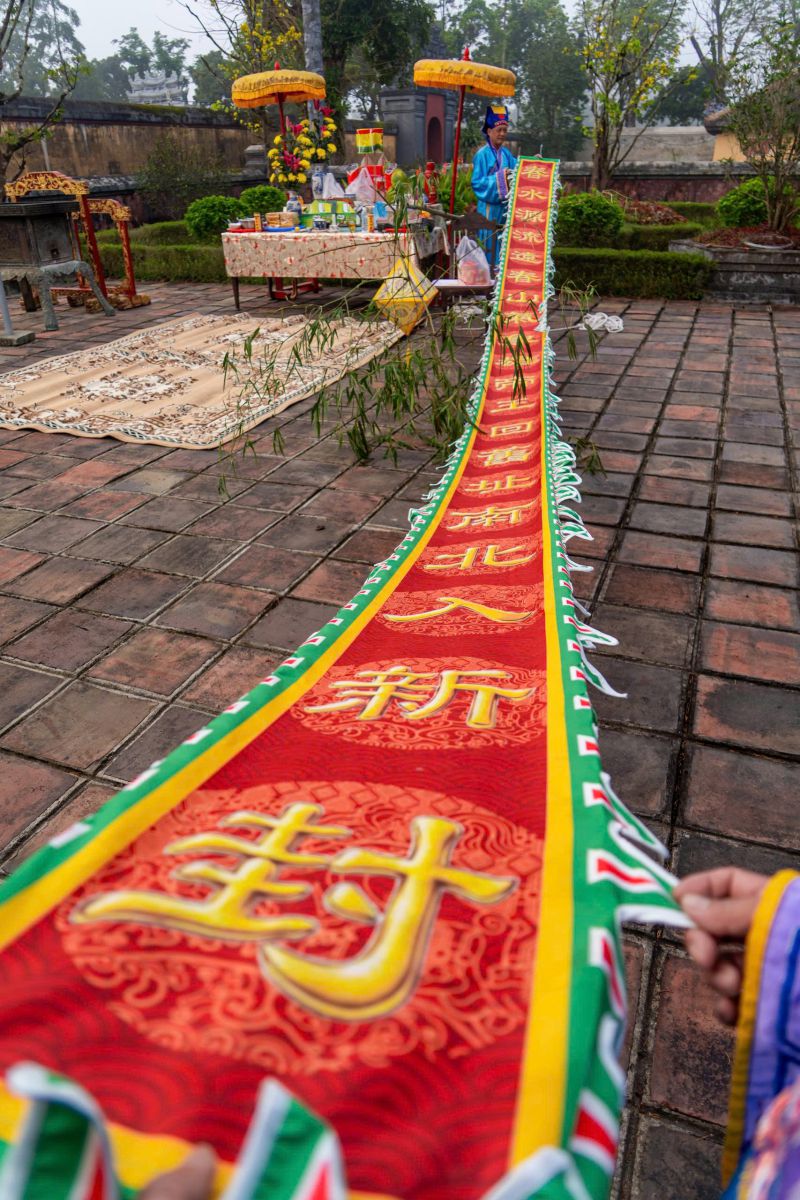 Tiếp đó là nghi thức dựng nêu với hương án và lễ phẩm được bày trí trang trọng. Đội Đại nhạc và các bồi tự đã sẵn sàng thực hiện nghi thức theo quy định.