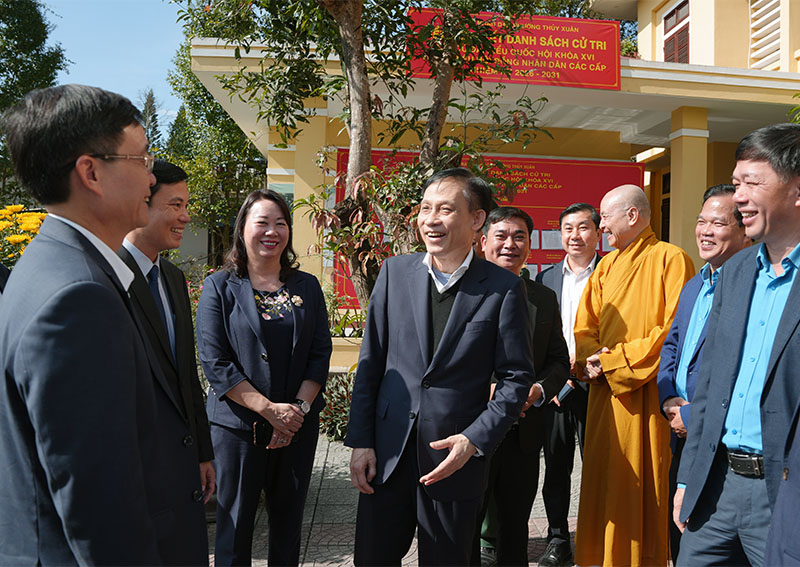 Sáng 11/2, đồng chí Lê Hoài Trung - Ủy viên Bộ Chính trị, Bộ trưởng Bộ Ngoại giao cùng đoàn công tác của Trung ương đã đến thăm và trao tặng quà cho các hộ nghèo, hộ cận nghèo, hộ có hoàn cảnh khó khăn trên địa bàn phường Thủy Xuân, thành phố Huế. Đi cùng đoàn có đồng chí Nguyễn Đình Trung - Ủy viên Ban Chấp hành Trung ương Đảng, Bí thư Thành ủy Huế; đồng chí Nguyễn Chí Tài – Phó Bí thư Thành ủy, Chủ tịch Ủy ban MTTQ Việt Nam thành phố Huế cùng các đồng chí lãnh đạo các sở, ban, ngành của thành phố.