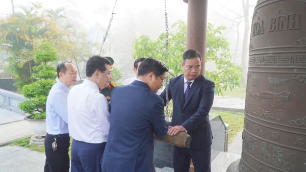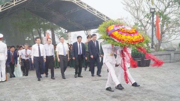 Trong không khí trang nghiêm, thành kính, đoàn đại biểu đã đặt vòng hoa mang dòng chữ “Đời đời nhớ ơn các anh hùng liệt sĩ” trước Tượng đài Tổ quốc ghi công và dâng hương tưởng niệm những người con ưu tú của quê hương và mọi miền Tổ quốc đã anh dũng hy sinh vì sự nghiệp cách mạng.