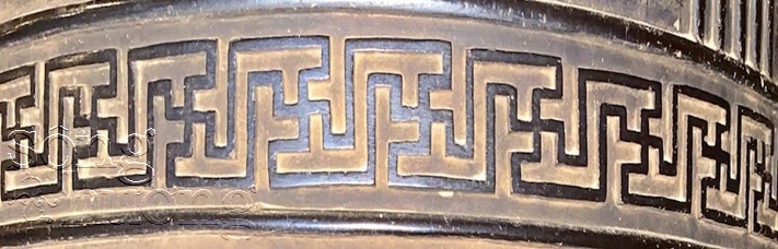 Hình tượng chữ Vạn (trên) và lá bồ đề (dưới) trên thân chuông ở Điện Huệ Nam