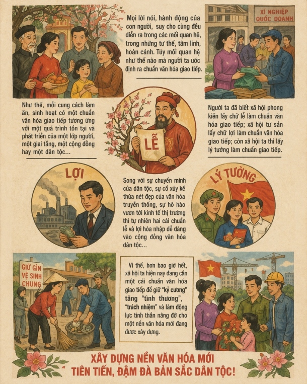Người ta đã biết xã hội phong kiến lấy chữ lễ làm chuẩn văn hóa giao tiếp; xã hội tư sản lấy chữ lợi làm chuẩn văn hóa giao tiếp; còn xã hội ta thì lấy lý tưởng làm chuẩn giao tiếp. Song với sự chuyển mình của dân tộc, sự cổ xúy kế thừa nét đẹp của văn hóa truyền thống, sự hô hào vươn tới kinh tế thị trường thì tự nhiên hai cái chuẩn lễ và lợi hòa nhập dễ dàng vào cộng đồng văn hóa dân tộc. Điều này về mặt thực tế thì người ta khó có thể xem xét được và rút ra điểm khả thủ, song về mặt lý luận thì thật còn phải trăn trở nghiên cứu nhiều.