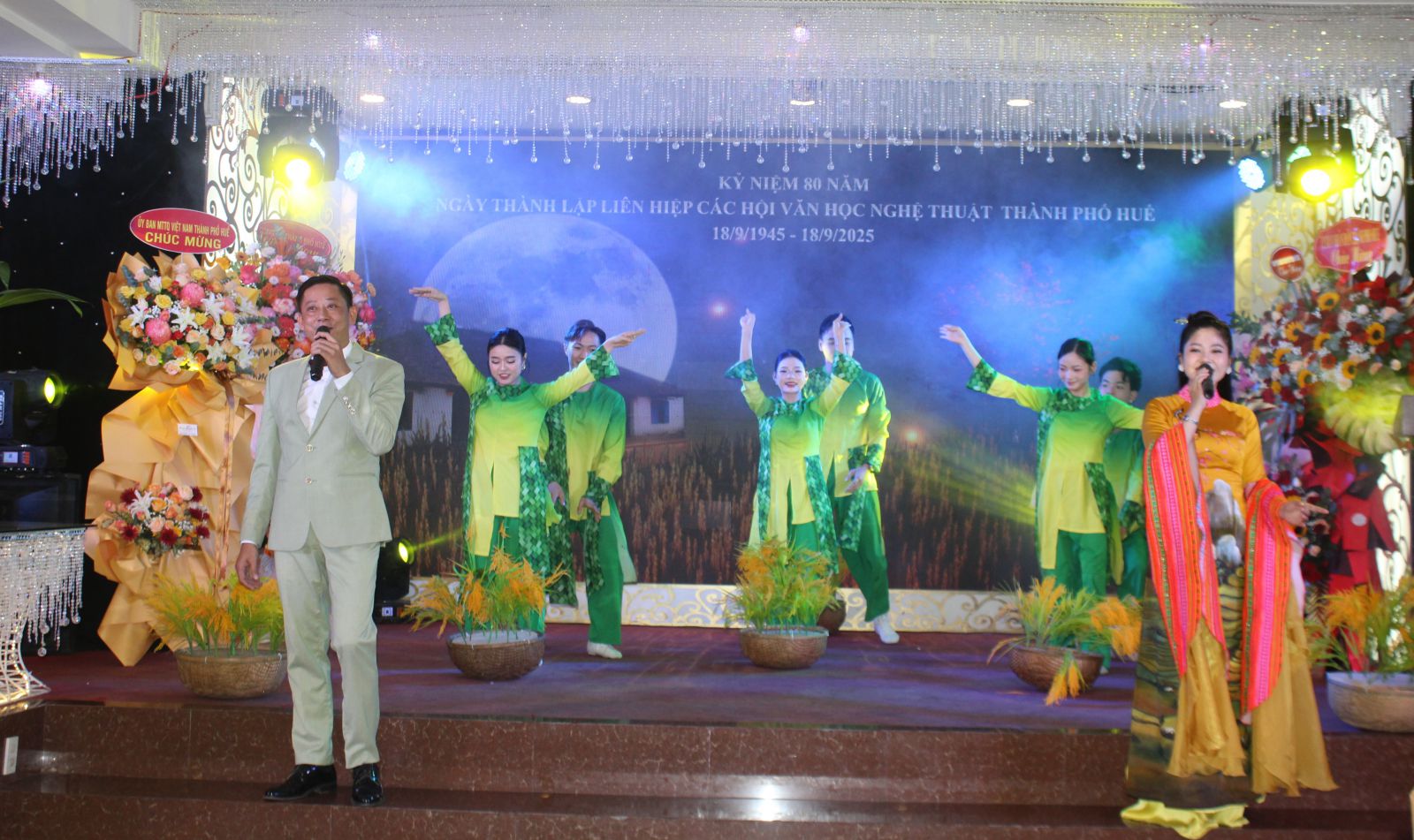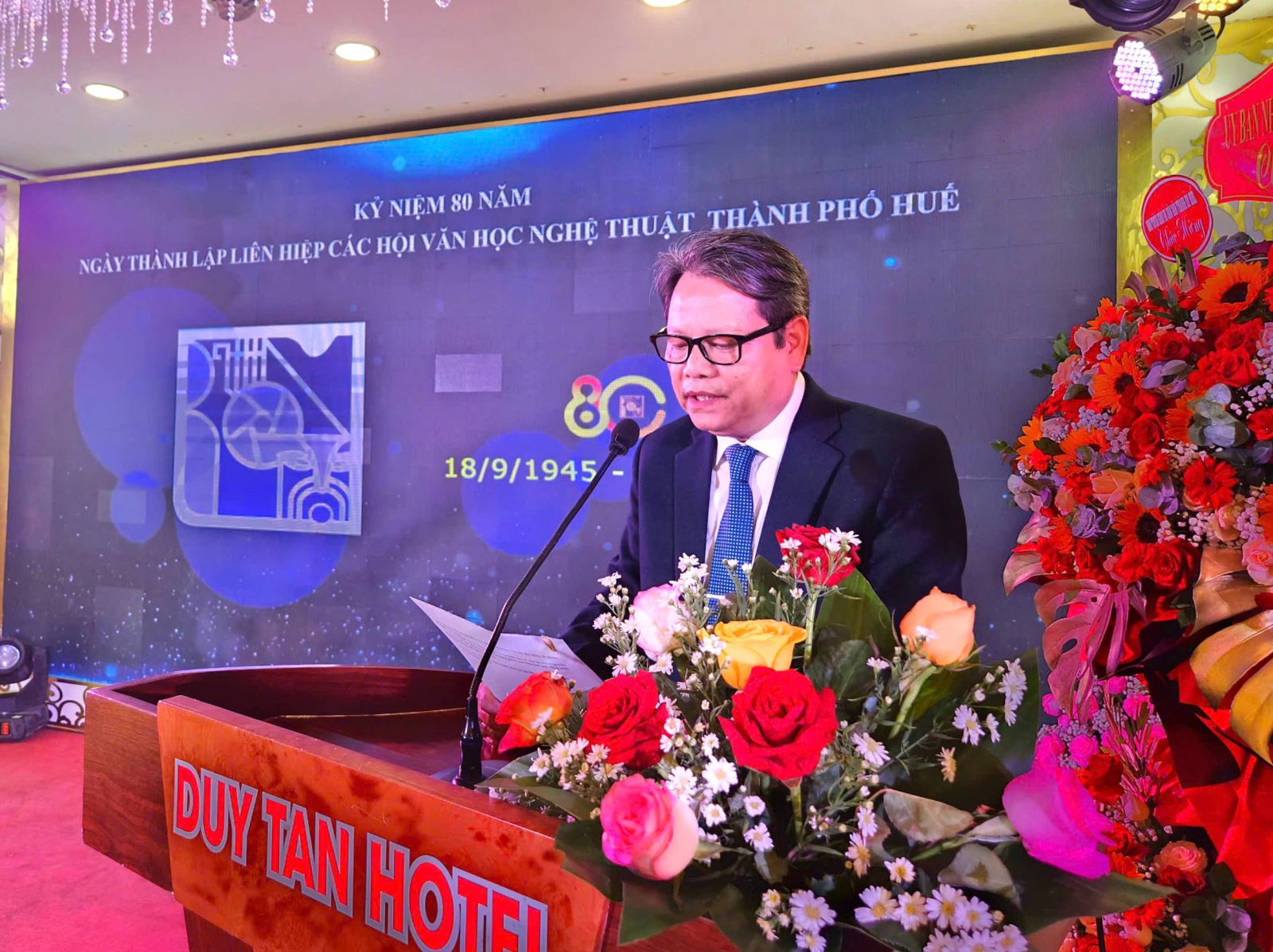 Phát biểu tại lễ kỷ niệm, Phó Chủ tịch UBND TP Huế Nguyễn Chí Tài đã gửi lời chúc mừng, biểu dương và trân trọng cảm ơn những đóng góp hết sức to lớn của đội ngũ văn nghệ sĩ và Liên hiệp các Hội Văn học nghệ thuật thành phố trong 80 năm qua. Trong giai đoạn xây dựng và phát triển quê hương, đất nước Liên hiệp các Hội Văn học Nghệ thuật thành phố đã không ngừng tạo dựng và nâng tầm các hoạt động văn học nghệ thuật theo hướng ngày càng chuyên nghiệp hơn, qua đó khẳng định thành phố Huế không chỉ là nơi giữ gìn bản sắc văn hoá của dân tộc; truyền thống văn hoá của quê hương, con người xứ Huế mà còn là địa chỉ quảng bá, kết nối đưa giá trị văn học nghệ thuật của xứ Huế đến với đông đảo công chúng trong và ngoài nước.