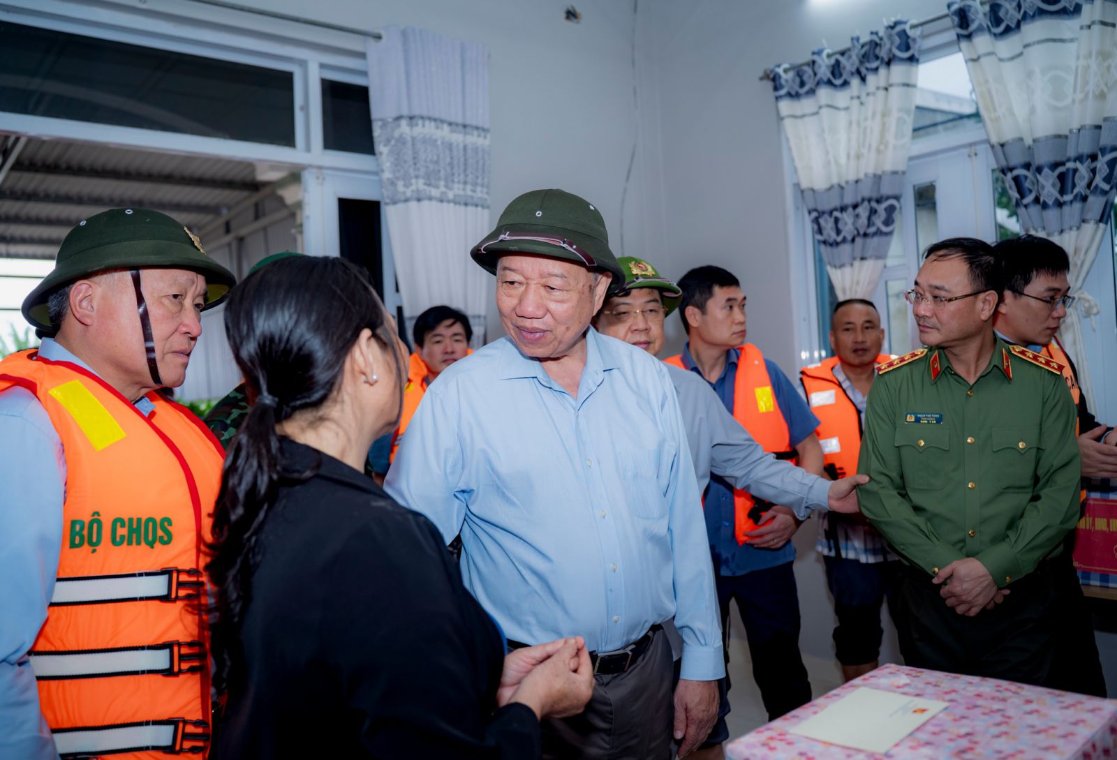 Tổng Bí thư Tô Lâm và đoàn công tác của Trung ương đến thăm hỏi người dân vùng lũ
