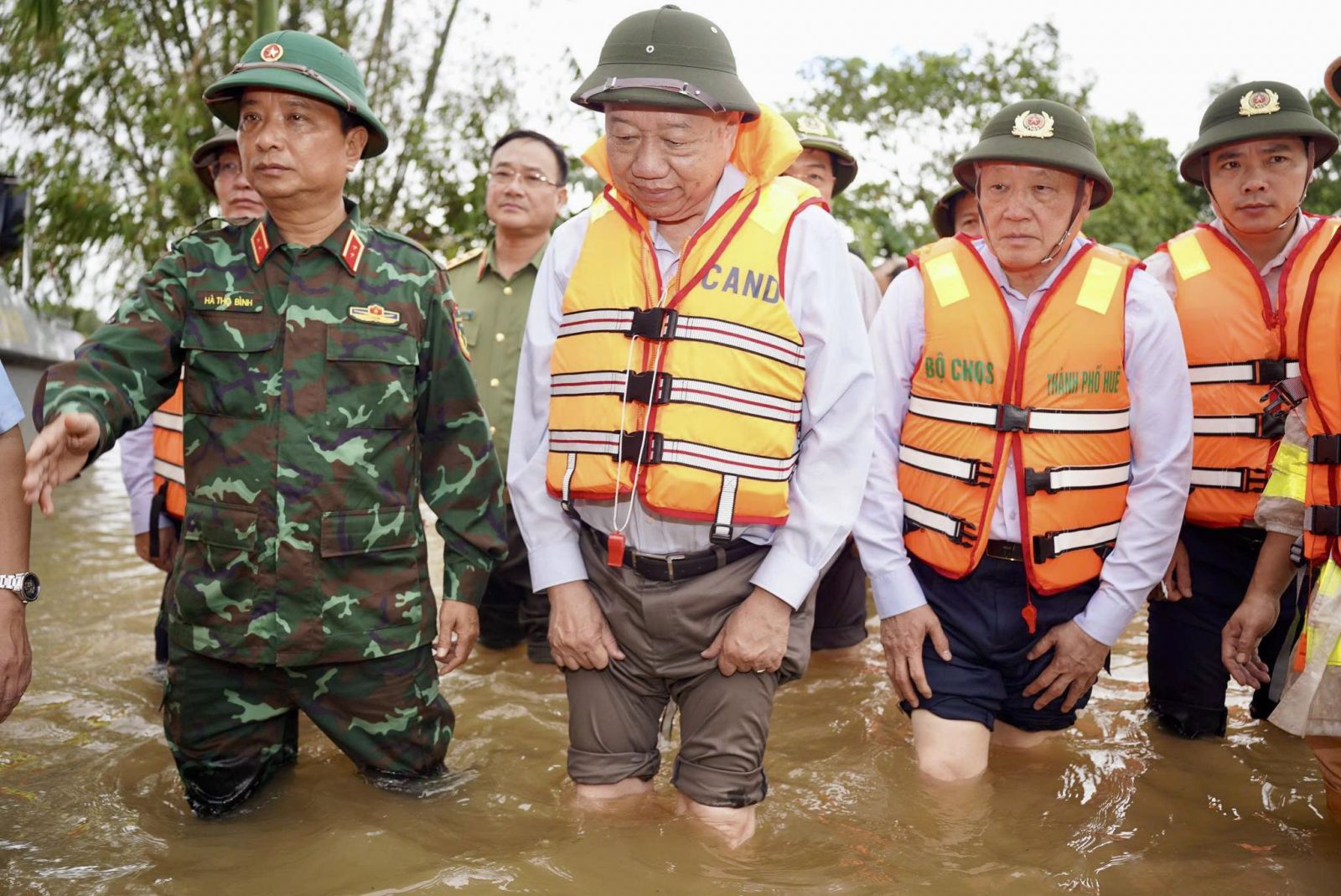 Phát biểu tại chuyến thăm, Tổng Bí thư Tô Lâm biểu dương sự chủ động, kịp thời của cấp ủy, chính quyền, lực lượng công an, quân đội và các đoàn thể trong công tác ứng phó, cứu trợ người dân trong mưa lũ. Thành phố Huế là địa phương thường xuyên chịu ảnh hưởng thiên tai, vì vậy cần chủ động hơn nữa trong công tác dự báo, phòng chống, ứng phó và khắc phục hậu quả. Đồng thời, Tổng Bí thư đề nghị chính quyền địa phương các cấp phải thể hiện rõ hơn tinh thần trách nhiệm, chủ động và sâu sát với dân, thường xuyên kiểm tra, rà soát phương án sơ tán, bảo đảm an toàn tại các khu vực xung yếu, kịp thời hỗ trợ người dân khắc phục hậu quả, khôi phục sản xuất, ổn định sinh hoạt. Yêu cầu đặt ra là không để người dân thiếu ăn, thiếu nước sạch hay thiếu nơi ở an toàn, đặc biệt quan tâm đến các hộ nghèo, gia đình chính sách, người già và trẻ nhỏ.