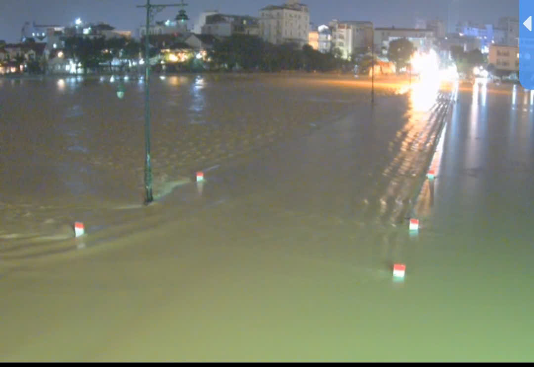 Nước đã tràn qua Đập Đá - đường Nguyễn Sinh Cung (Huế S)