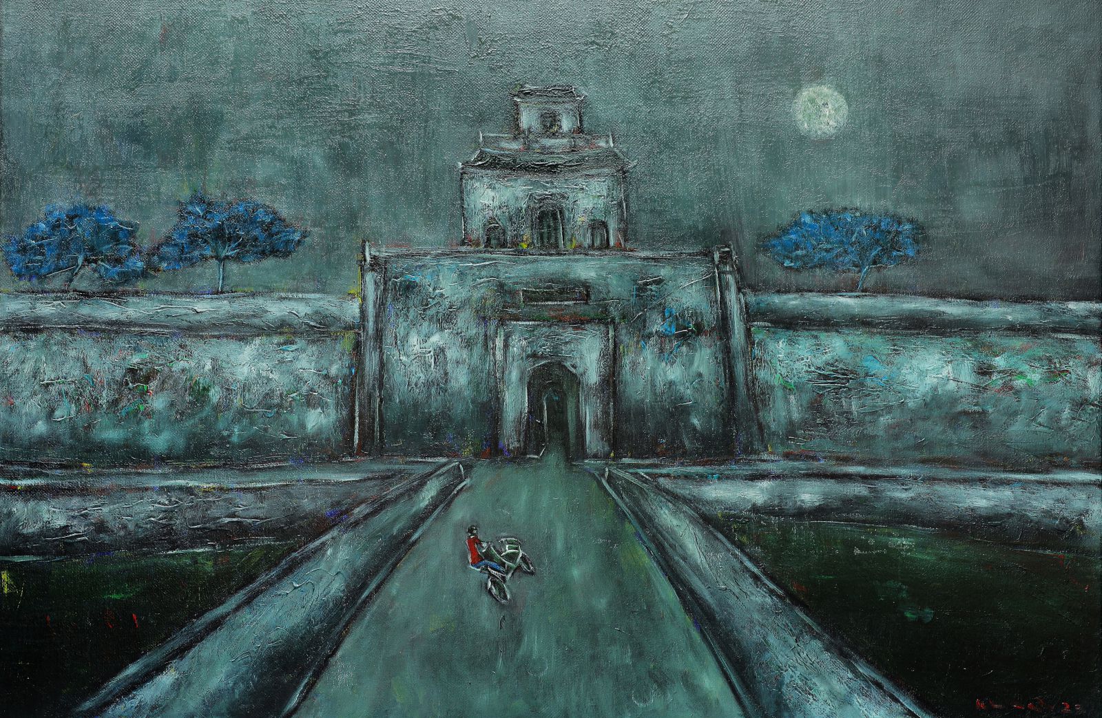 Hoàng cung xanh, (Sơn dầu trên vải) 100 x 140cm - Lê Hữu Long