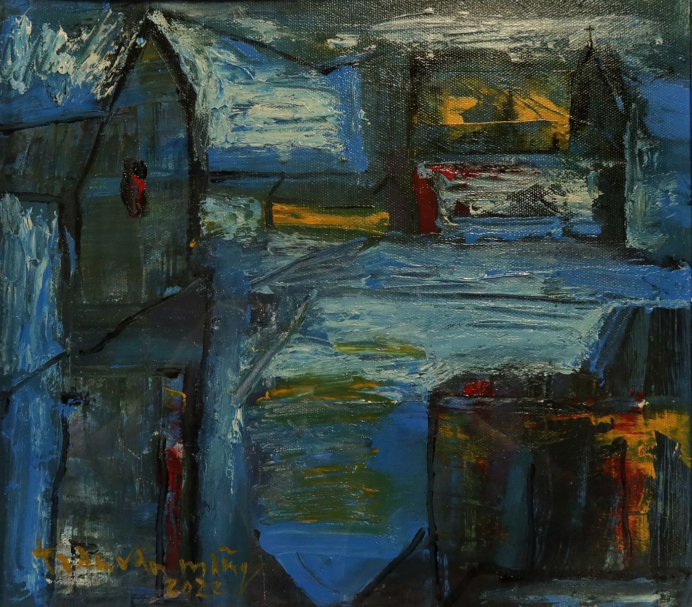 Đường Bạch Đằng sau cơn mưa, (Acrylic trên vải), 70 x 80cm - Trần Anh Huy