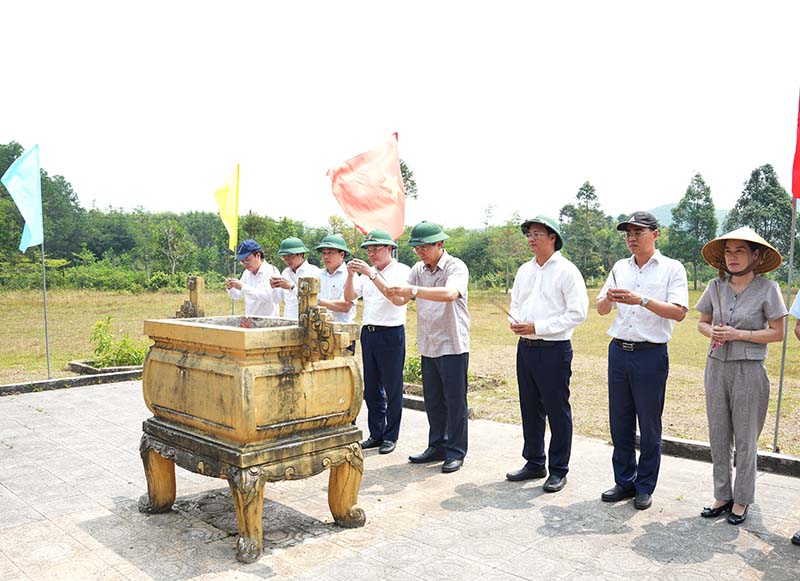 Tại đây, các đồng chí lãnh đạo thành phố cùng các thành viên trong đoàn đã thành kính dâng hương, bày tỏ lòng tri ân sâu sắc đối với các thế hệ cán bộ, đảng viên và nhân dân đã anh dũng chiến đấu, hy sinh vì sự nghiệp giải phóng dân tộc, thống nhất đất nước. Trong không khí trang nghiêm, đoàn đã ôn lại truyền thống cách mạng vẻ vang của Đảng bộ và nhân dân Thừa Thiên Huế.