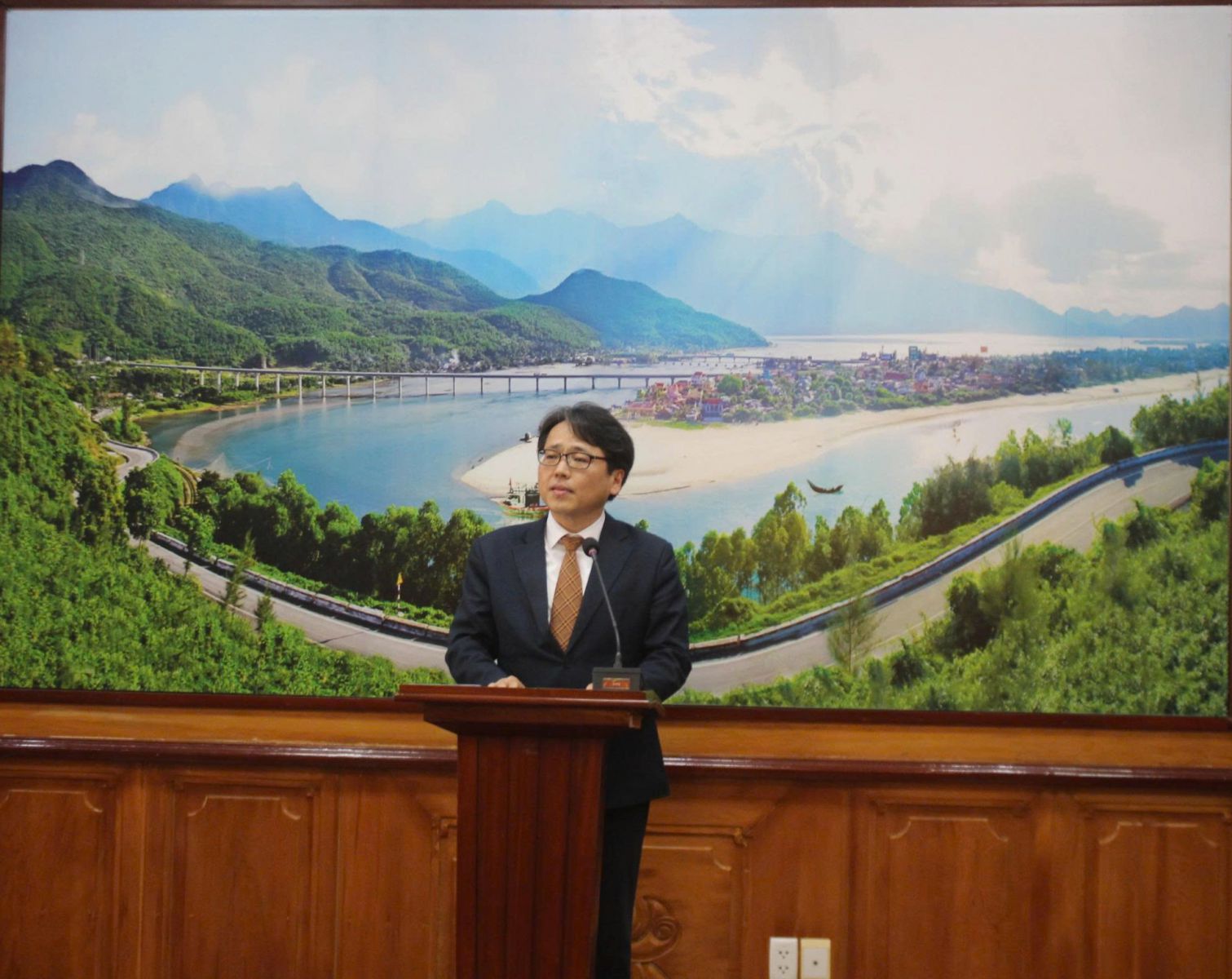 | Ông Kang Bong Jun, Tổng Giám đốc Công ty Trách nhiệm hữu hạn SMC Huế phát biểu tại lễ tôn vinh |