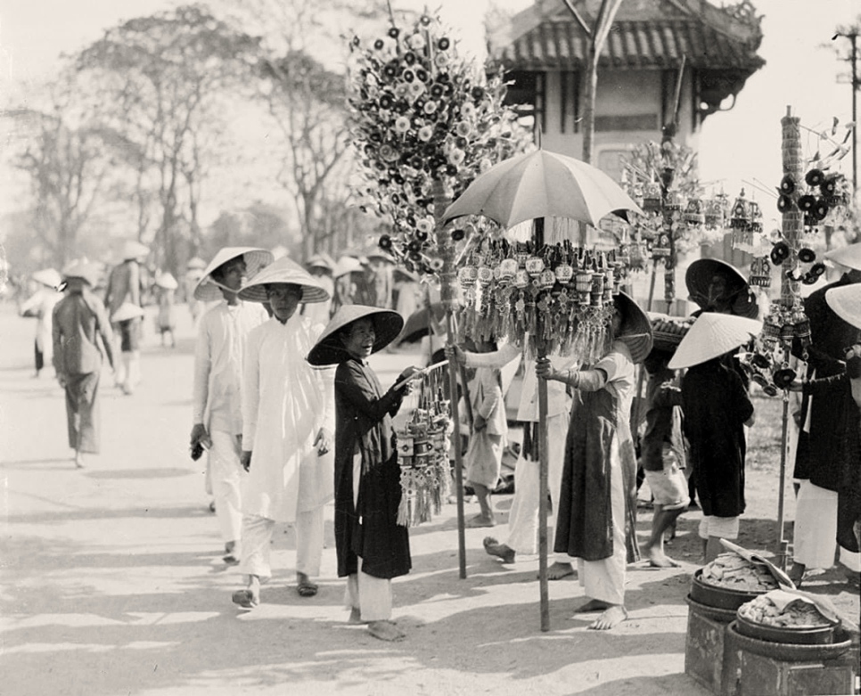 | Quang cảnh chợ Tết ở Huế trước năm 1945. Nguồn: manhhai flickr.com |