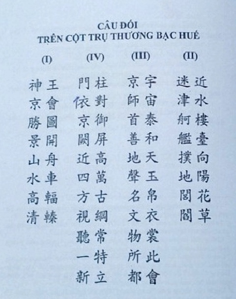 (II). Câu đối trên 2 cột ngoài (mặt phía sông Hương):