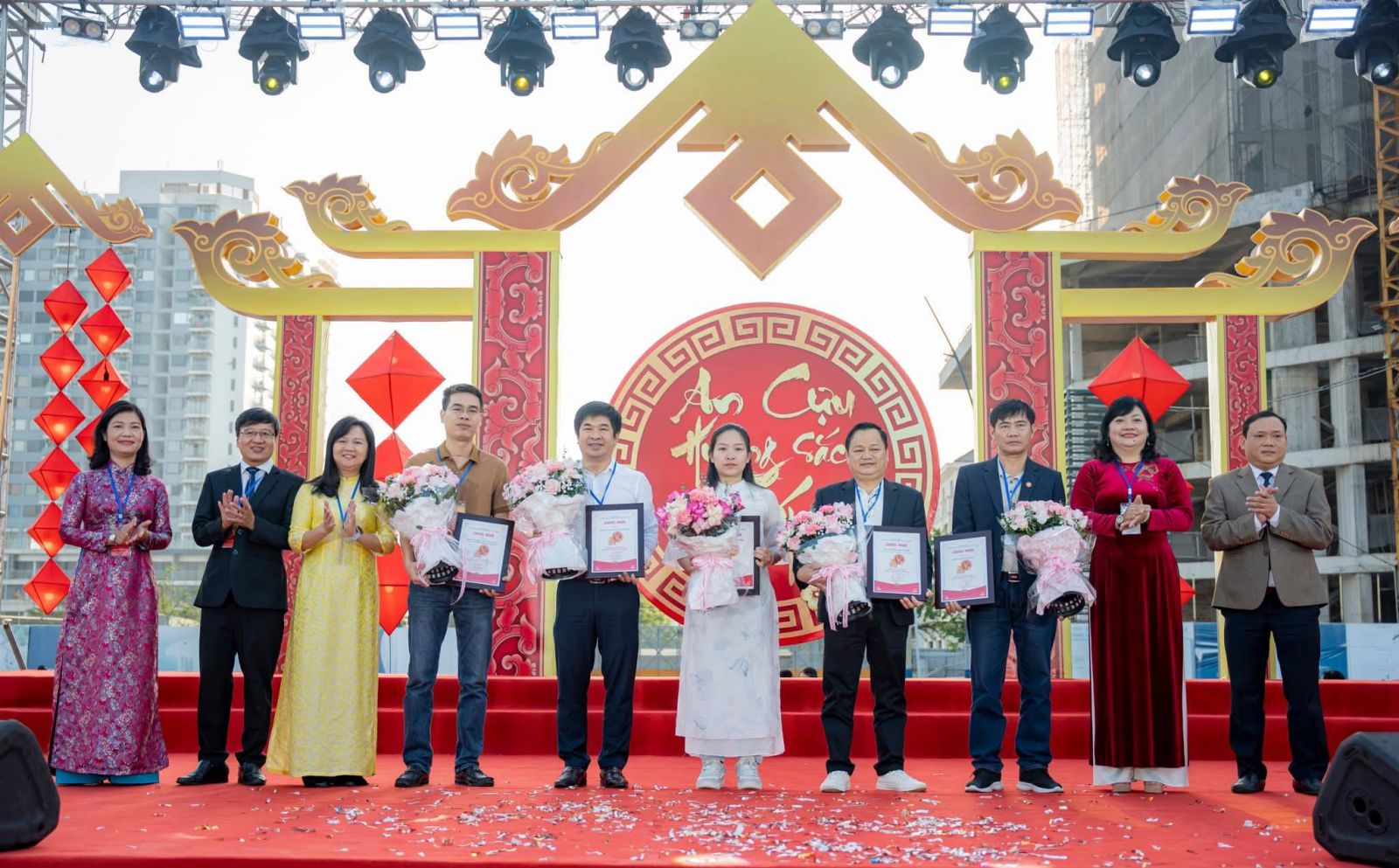 | Lãnh đạo phường An Cựu trao giấy chứng nhận cho các đơn vị tại chương trình “An Cựu – Hương Sắc Tết” |