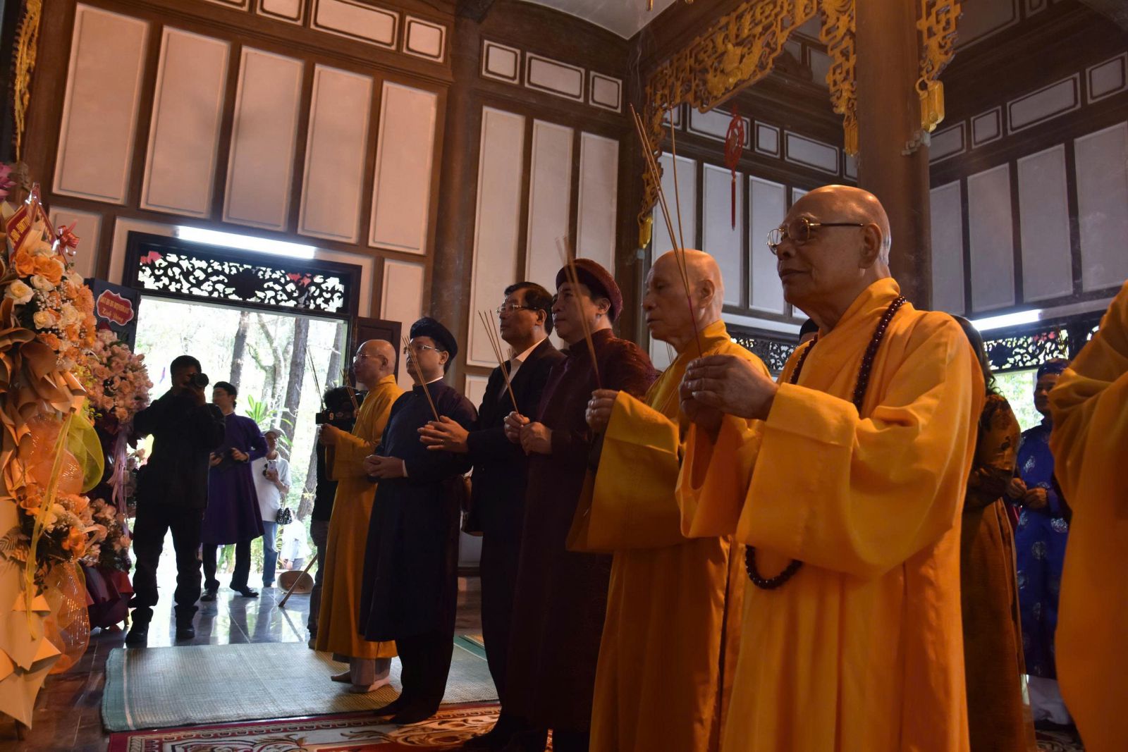 | Lãnh đạo TP Huế cùng các đại biểu thành kính dâng hương tưởng nhớ công ơn đức bà Huyền Trân Công chúa. |