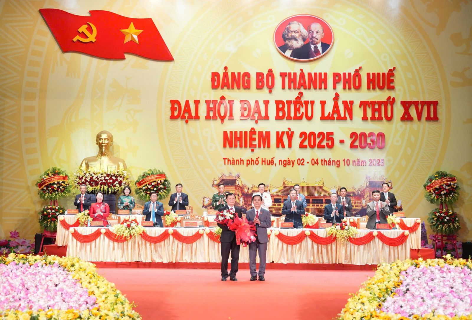 Bế mạc Đại hội đại biểu Đảng bộ thành phố Huế lần thứ  XVII - Nhiệm kỳ 2025 - 2030. Ban Chấp hành Đảng bộ thành phố Huế khóa XVII ra mắt, nhận nhiệm vụ