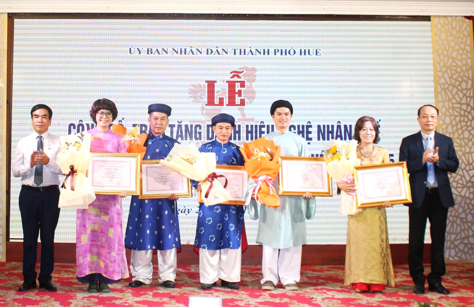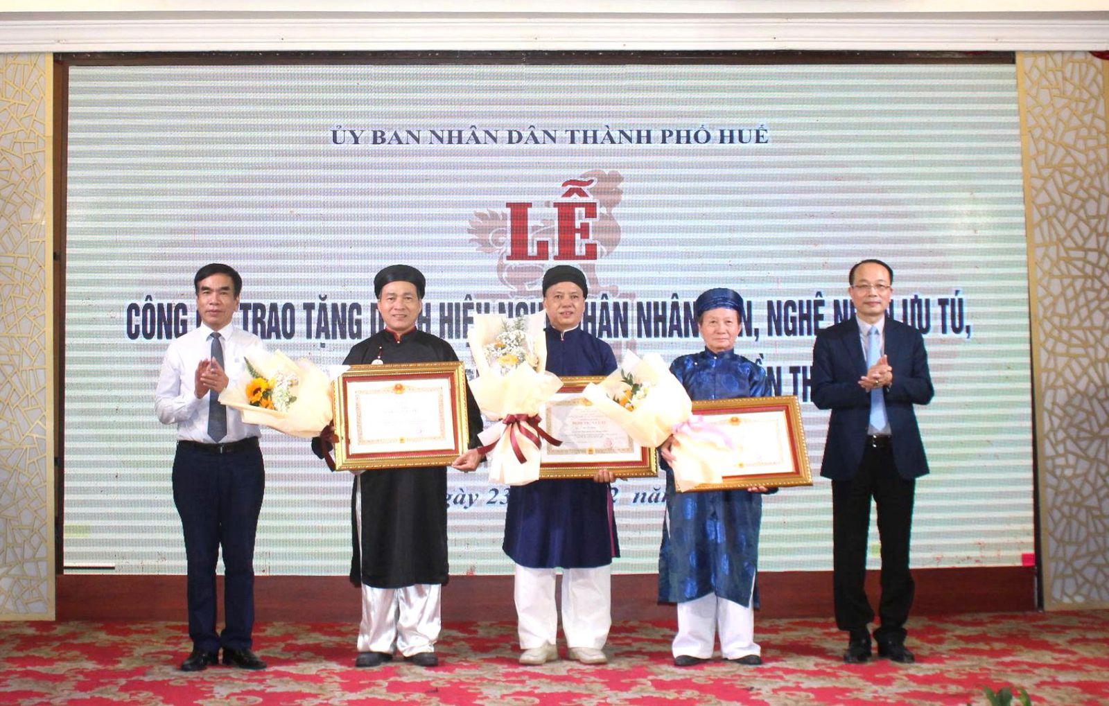 Tại buổi lễ, thừa ủy quyền của Chủ tịch nước Cộng hòa xã hội chủ nghĩa Việt Nam, lãnh đạo thành phố Huế đã trao Danh hiệu Nghệ nhân Nhân dân cho 01 cá nhân và Danh hiệu Nghệ nhân Ưu tú cho 03 cá nhân trong lĩnh vực nghề thủ công mỹ nghệ. Đồng thời thành phố đã phong tặng danh hiệu Nghệ nhân Huế cho 11 cá nhân hoạt động ở nhiều lĩnh vực nghề truyền thống như điêu khắc gỗ mỹ nghệ, mây tre đan, áo dài Huế, khảm sành sứ… Đây là những nghệ nhân có tay nghề cao, tâm huyết với nghề, có nhiều đóng góp trong gìn giữ, truyền dạy và phát huy giá trị thủ công mỹ nghệ trên địa bàn thành phố.