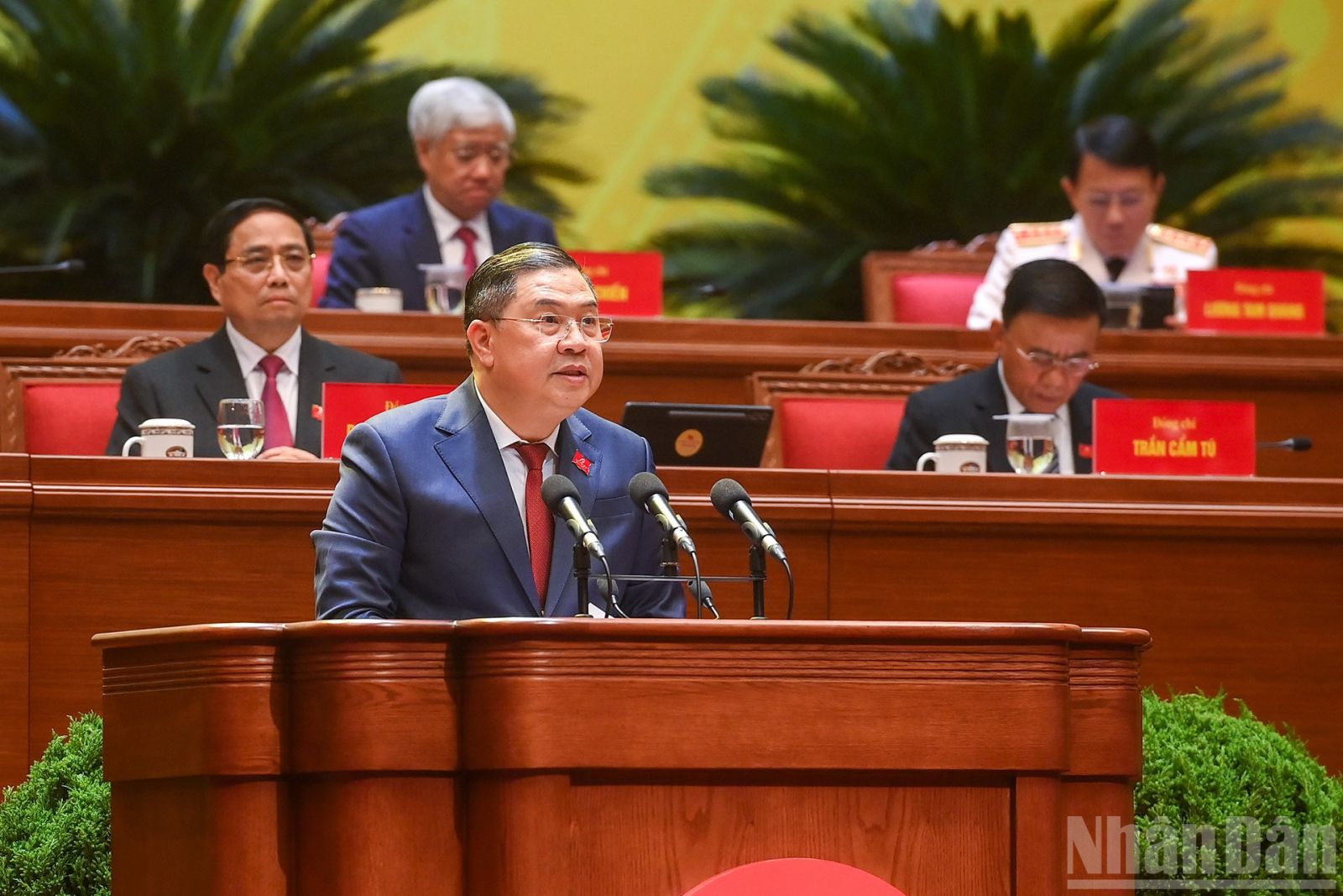 Đại hội đã biểu quyết tán thành, nhất trí cao thông qua Báo cáo thẩm tra tư cách đại biểu Đại hội XIV của Đảng do Ban Thẩm tra tư cách đại biểu trình. Theo đó, tất cả 1.586 đại biểu được triệu tập dự Đại hội đều đủ tư cách đại biểu Đại hội.