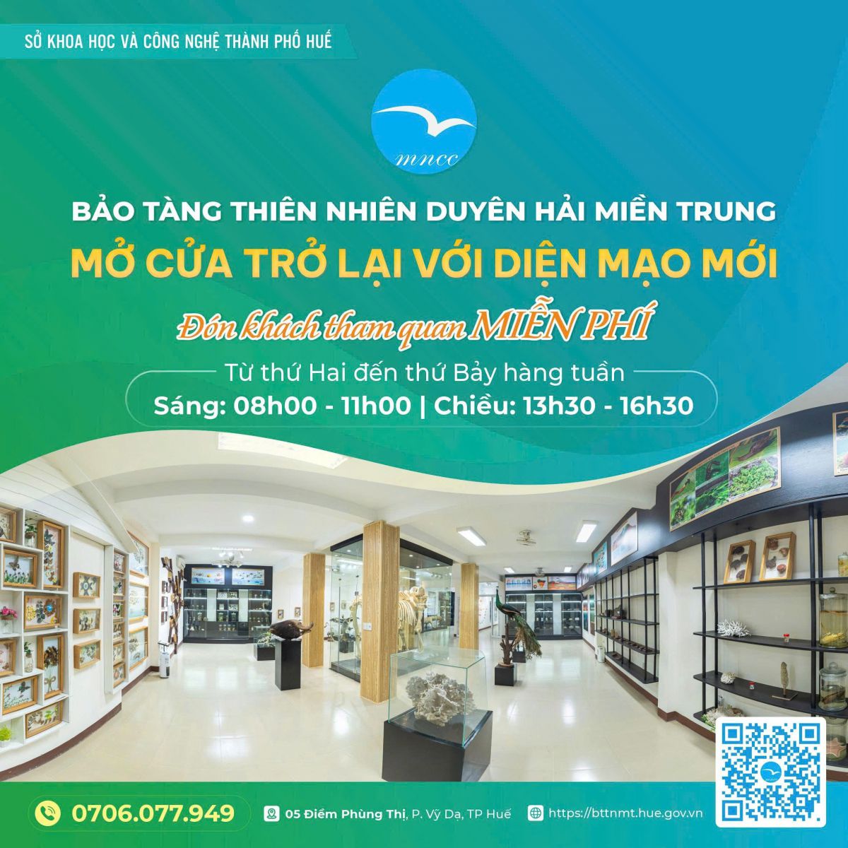 Sau thời gian dài sửa chữa, nâng cấp cơ sở vật chất và hoàn thiện nội dung trưng bày, Bảo tàng Thiên nhiên duyên hải miền Trung chính thức thông báo mở cửa trở lại, đánh dấu bước chuyển mình quan trọng, hướng tới mục tiêu phát triển từ một thiết chế khoa học chuyên ngành trở thành điểm đến văn hóa – giáo dục – du lịch trải nghiệm.