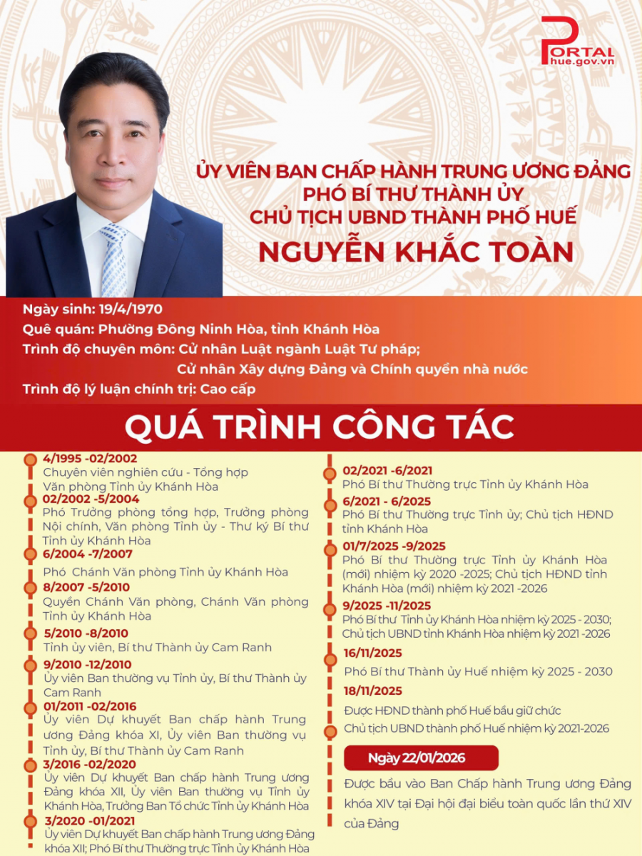 Hai đồng chí lãnh đạo chủ chốt thành phố Huế trúng cử Ban Chấp hành Trung ương Đảng khóa XIV Cập nhật: 22/01/2026 22:35:15