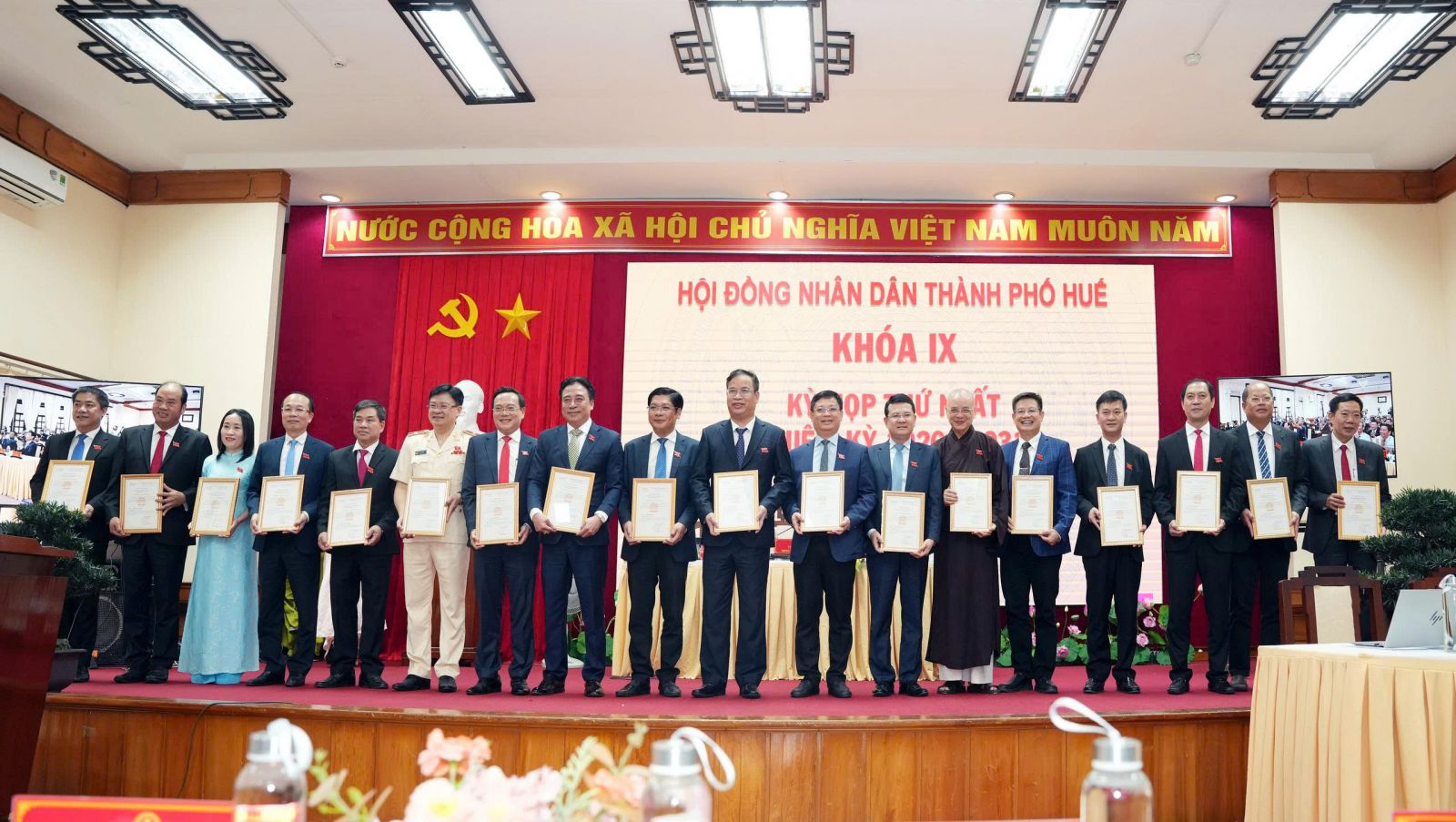 Phát biểu chỉ đạo tại kỳ họp, Bí thư Thành ủy Huế Nguyễn Đình Trung chúc mừng 53 vị đại biểu Hội đồng nhân dân thành phố Huế khóa IX đã được cử tri tín nhiệm bầu chọn. Đây vừa là niềm vinh dự lớn lao, vừa là trách nhiệm nặng nề trước Đảng bộ, chính quyền và Nhân dân thành phố.