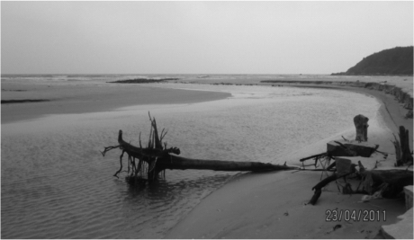 Ảnh 4: Cửa Tư Dung ngày nay chỉ còn là một vạt phi lao và một dòng chảy hẹp thế này, không biết bao giờ sẽ đóng lại hoàn toàn (Ảnh Đỗ Nam) |