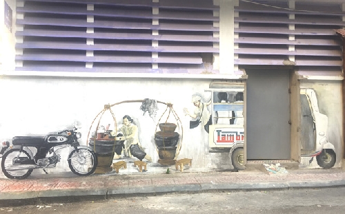 Hơn 3 tháng nay, ở góc đường Cao Bá Quát - Thái Văn Lung (Q.1, TP.HCM) xuất hiện hai bức bích họa như một sự hoài niệm về Sài Gòn xưa. Tác giả là những người còn rất trẻ. Từ Hà Nội vào phương nam lập nghiệp, anh Đỗ Nguyên Chung gặp các bạn là sinh viên Trường ĐH Mỹ thuật cùng rủ nhau mở quán kinh doanh. Nhìn 2 bức tường góc đường trước quán đã quá cũ, nhóm bạn liền lên kế hoạch vẽ bích họa. Sau một tuần, bức tranh hoàn thành với những hình ảnh bình dị, thân thương như chiếc xe máy 67, xe lam, người phụ nữ búi tóc bán hàng rong...
