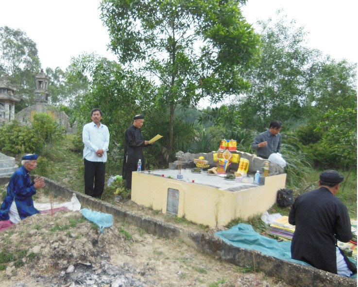 | Làng Phú Xuân viếng mộ cô hồn vào ngày 14/1/Ất Mùi, (trong ảnh có mộ dời của Lê tiến sĩ) |