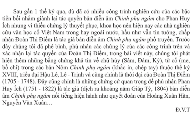 Đoàn Thị Điểm và bản diễn âm Chinh phụ ngâm