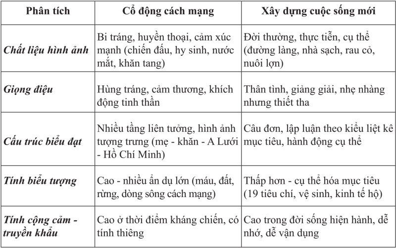 Cách mạng: giọng bi tráng - hào hùng - cảm thương → dẫn đến ý chí chiến đấu.
