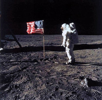 Trong số 80 bức ảnh này có bức ảnh chụp những bước chân đầu tiên trên Mặt trăng của phi hành gia Mỹ Neil Armstrong. Có nhiều chi tiết đáng ngờ trong ảnh: hầu như không có bụi Mặt trăng, lá cờ Mỹ bay phất phới trong môi trường không có không khí, có quá nhiều ánh sáng... Một số người quá khích cho rằng bức ảnh này được “chế”trong một studio ngày 20-7-1969. Một số người khác tự hỏi liệu con người đã thật sự đặt chân lên Mặt trăng chưa? Cho đến nay NASA vẫn chưa đưa ra bình luận gì về những câu hỏi trên.