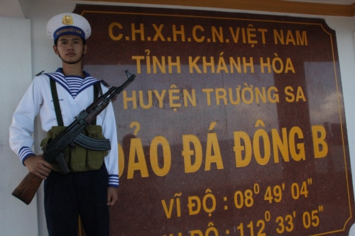 Hôm đoàn chúng tôi đặt chân lên đảo Đá Đông B, ai cũng bất ngờ khi nhìn thấy một chiến sĩ - tuổi còn rất trẻ với khuôn mặt rất thư sinh - đang làm nhiệm vụ canh giữ mốc chủ quyền trên đảo.