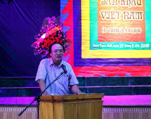 | Nghệ sĩ Nguyễn Văn Thanh - Chủ tịch Hội Nghệ sĩ sân khấu Thừa Thiên Huế báo cáo hoạt động của Hội NSSK |