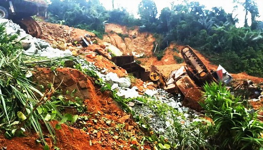| Hiện trường sạt lở núi nghiêm trọng ở thủy điện Rào Trăng 3 |