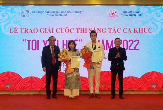 | Trao giải nhì được trao cho hai ca khúc “Giấc mơ Huế” của tác giả Trần Thị Thùy Phương và “Nón” của tác giả Phan Huy Thành |