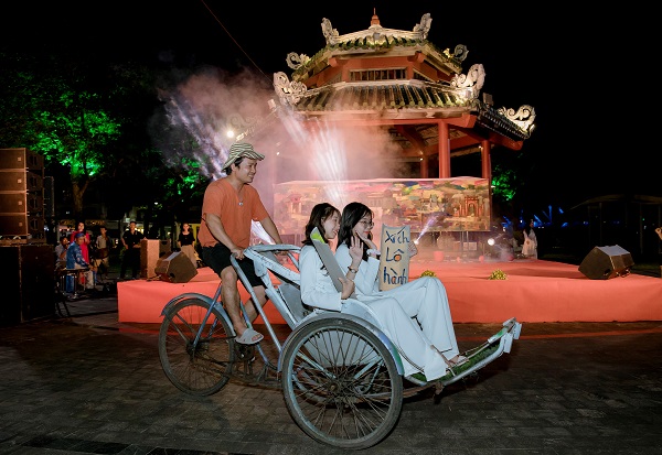Đặc biệt, khán giả đã được thưởng thức phần trình diễn của nhà văn Lê Vũ Trường Giang cùng các học sinh trường THPT chuyên Khoa học Huế trình diễn tác phẩm Liên khúc Xích lô hành - Giọt nước Hương Giang của nhà thơ Phương Xích Lô.