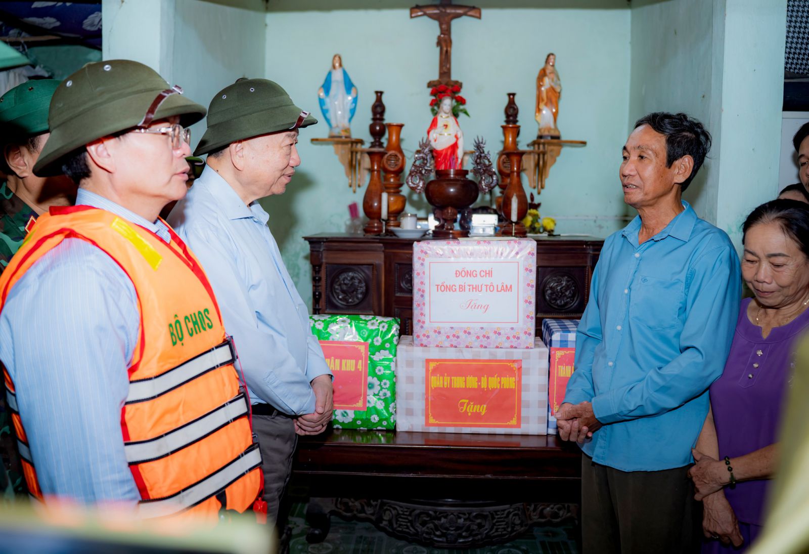 Tổng Bí thư Tô Lâm và đoàn công tác của Trung ương đến thăm hỏi người dân vùng lũ