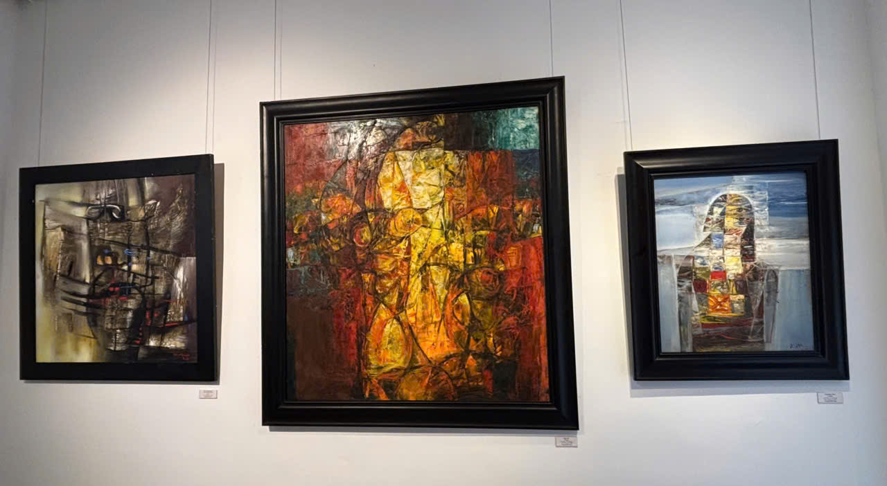 3 tác phẩm từ trái sang Vũ điệu Champa (1982), Phụ nữ (2002), Không tên (2002) của Họa sĩ Dương Đình Sang