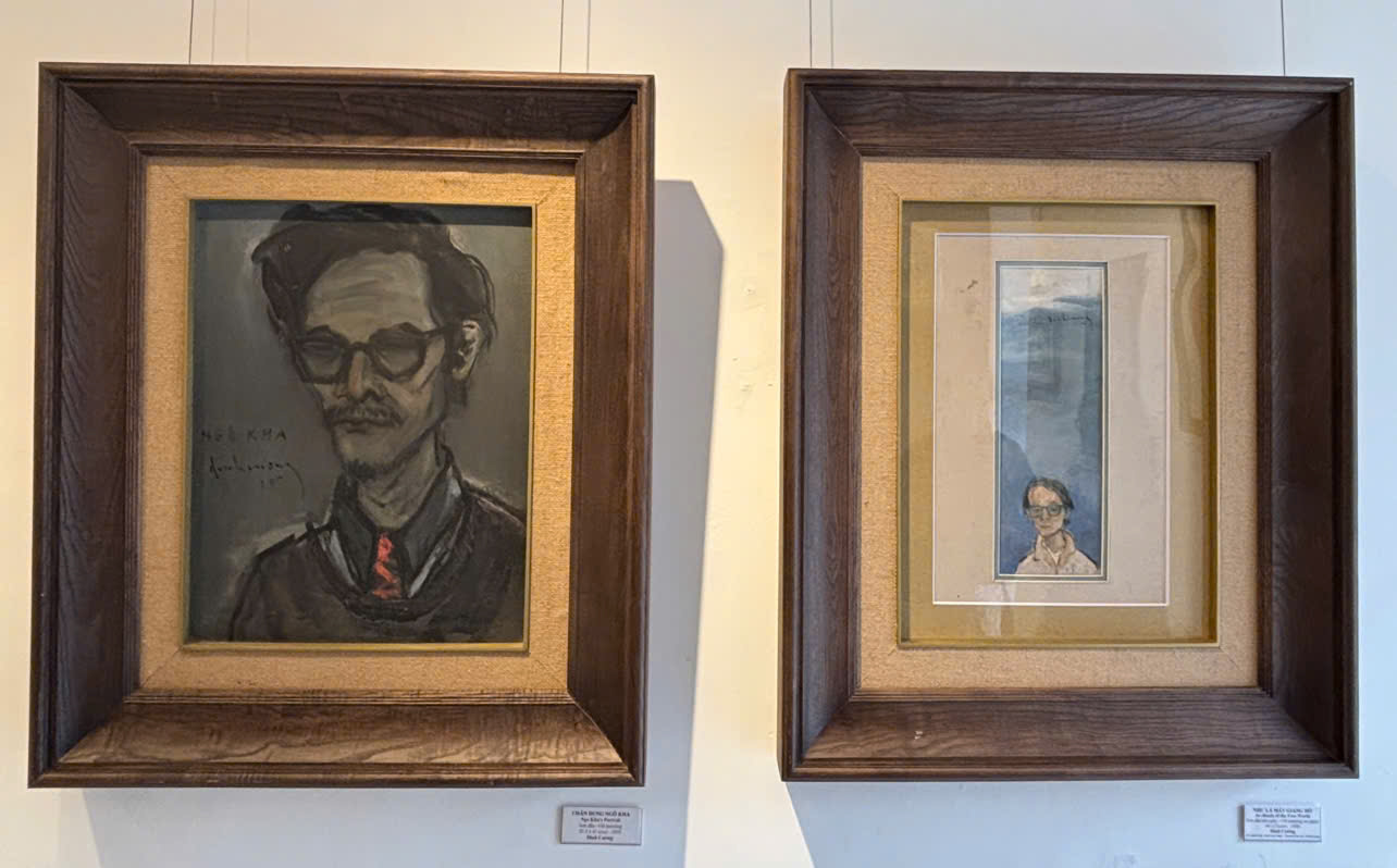 2 tác phẩm Sơn dầu từ phải sang trái: Như là mây giang hồ (2006), Chân dung Ngô Kha (2005) của Họa sĩ Đinh Cường