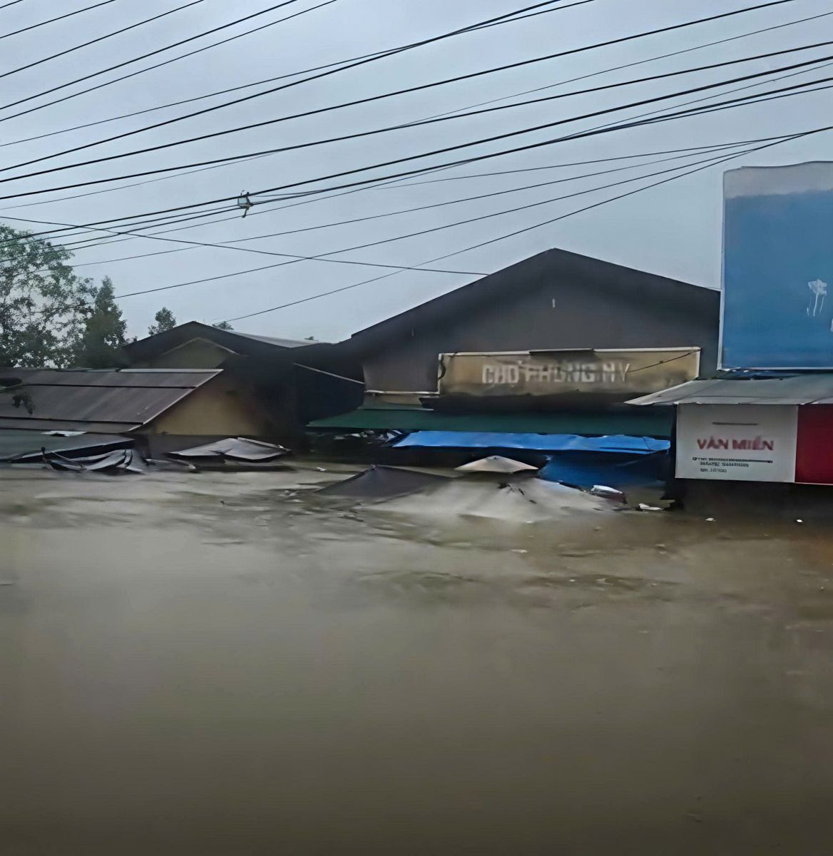 | Khu vực chợ Phong Mỹ bị ngập sâu |