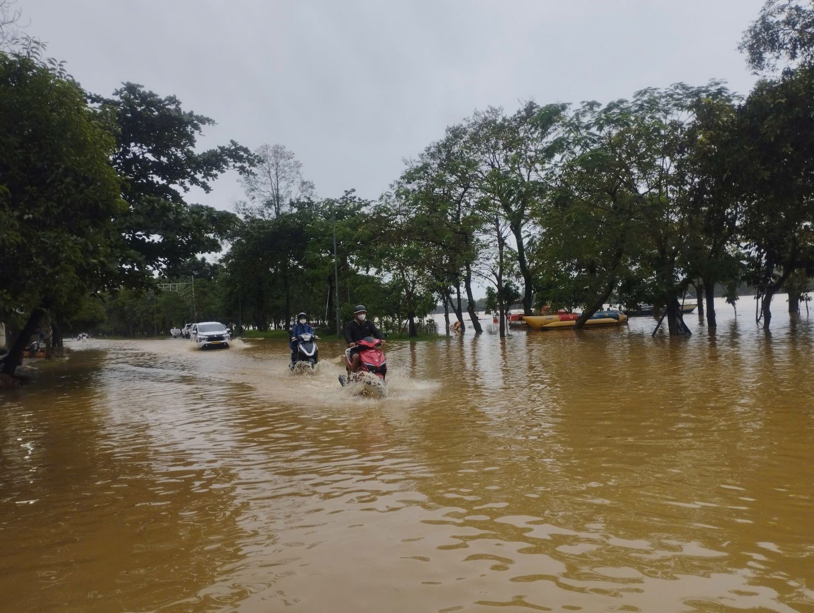 | Nước Sông Hương dâng cao, tràn qua đường Nguyễn Phúc Nguyên, phường Kim Long |