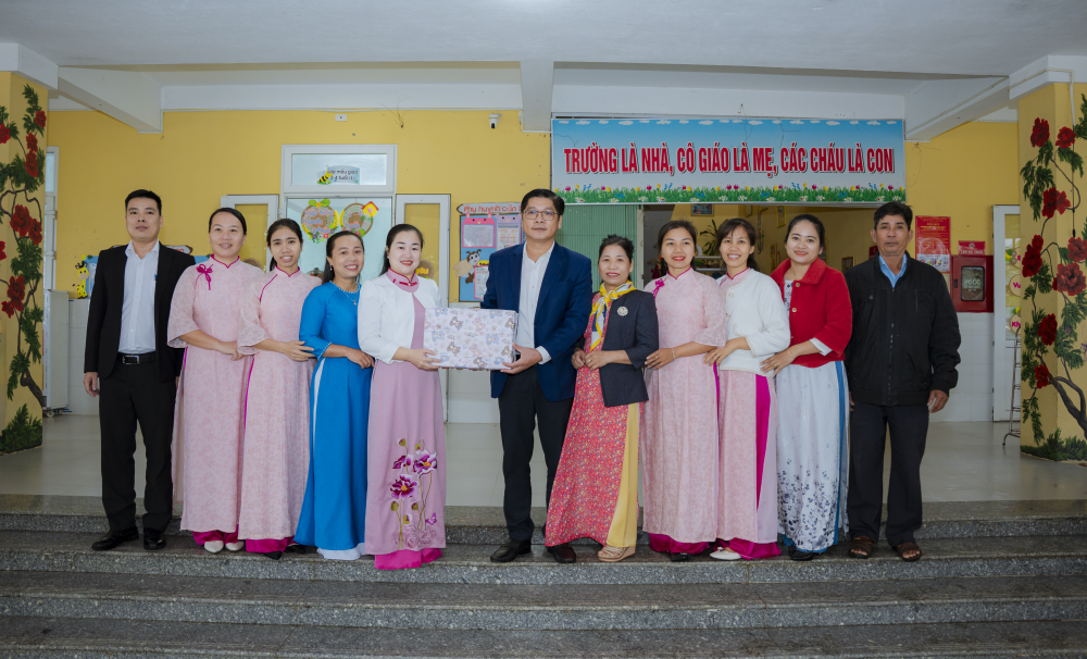 Phó Bí thư Thành Ủy Nguyễn Chí Tài tặng quà chúc mừng cho đội ngũ cán bộ, giáo viên Trường Mầm non Hương Phong |